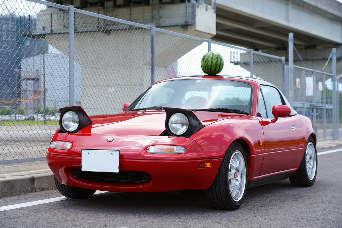 さてさて、先日のエントリーで熟考の末にユーノスロードスターの保有続行を決めた私であります。昨日も朝6時台より真心込めてミニマムボディのロド子さんを2時間かけてエンジンルームまで綺麗にして、街の八百屋までスイカ求めてドライブして来ました。