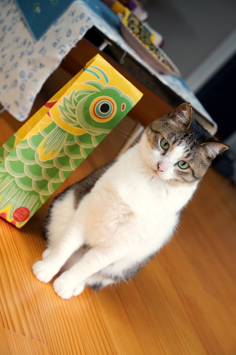 こどもの日は高島屋まで和菓子を買いに出掛け、我が家のオス猫むさしまるのお祝い。